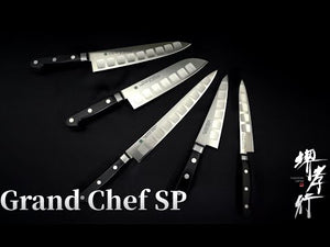 All Grand Chef series knives are made from high quality Bohler N685 stainless steel. This is a martensitic chromium stainless steel with added molybdenum and vanadium, which results in high hardness and good wear resistance, with excellent corrosion resistance -- an ideal steel for durable and sharp kitchen knives! Grand Chef blades are hard and tough with long lasting edges. HRC approx. 59-60 for sharpness and ease of maintenance and sharpening.